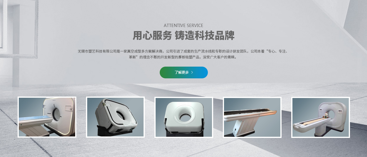 無錫塑藝科技有限公司成立于2006年。是一家集研發(fā)、生產(chǎn)、經(jīng)銷為一體的真空成型解決方案有限公司,主要生產(chǎn)厚板吸塑制品、薄片吸塑制品、滾塑制品、機加工制品、模具設(shè)計制作以及各種環(huán)保包裝材料。